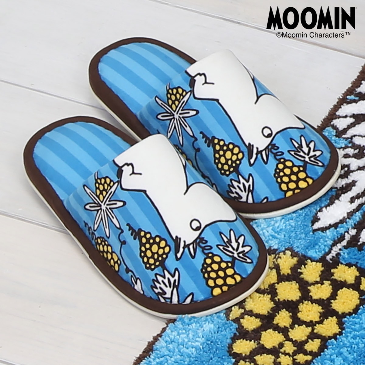 ブルー(ムーミン)ビビットなカラーがパッと目を引く、ムーミンのスリッパです。