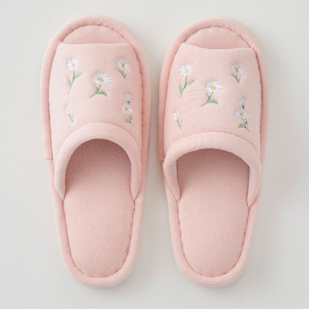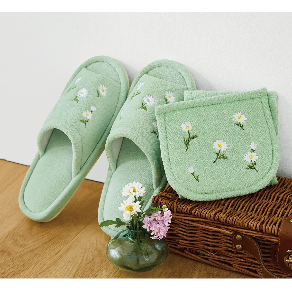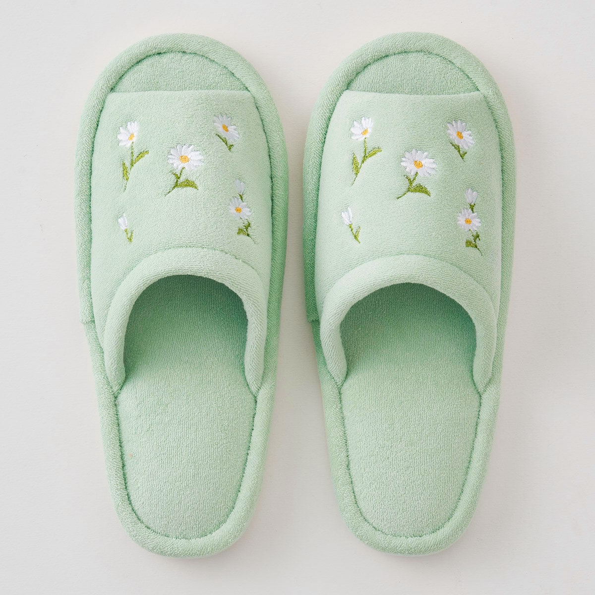 さりげないマーガレットの刺繍が上品な印象に。※商品はトイレスリッパです。