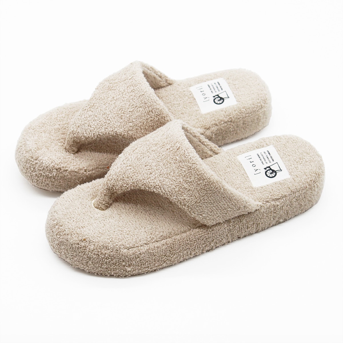 やわらかく吸水性に優れた綿100%のパイル生地を、甲裏まで贅沢に使用したタオルスリッパです。素足が喜ぶやさしい肌ざわりで、ふんわりとした履き心地。鼻緒部分には柔らかなパイル素材を使用しており、指の付け根が痛くなりにい仕様。ジメジメする季節やお風呂上がりのリラックスタイムにおすすめ。厚みのあるインソールでほどよいクッション性です。底面はパタパタ音がしにくいポリエステルスエード素材を使用しているので、マンションでも安心です。ご家庭の洗濯機で気軽に洗えるので、汗をかいても清潔に使えます。