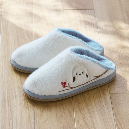 ブルーもふもふファーに甲まですっぽり包まれる幸せ