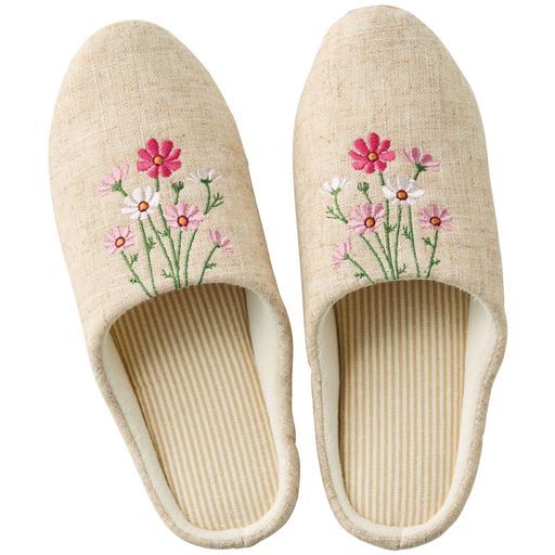 ナチュラル刺繍デザインスリッパ