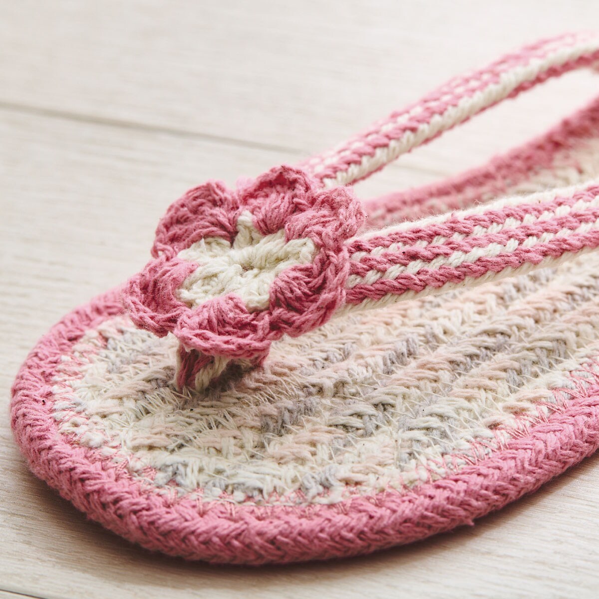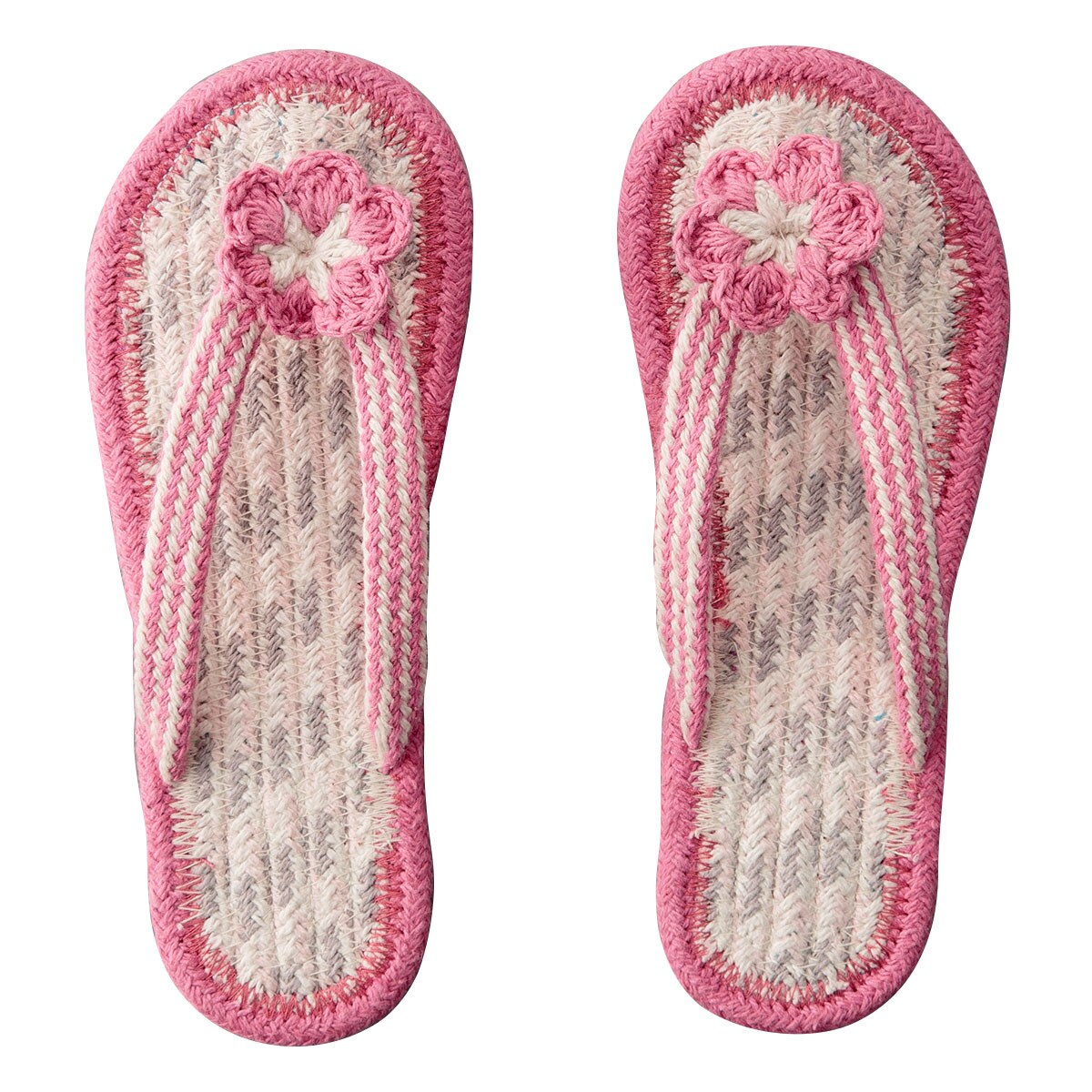 ピンク花 Mひとつずつ手仕事で編み上げています。鼻緒タイプで足指開放!