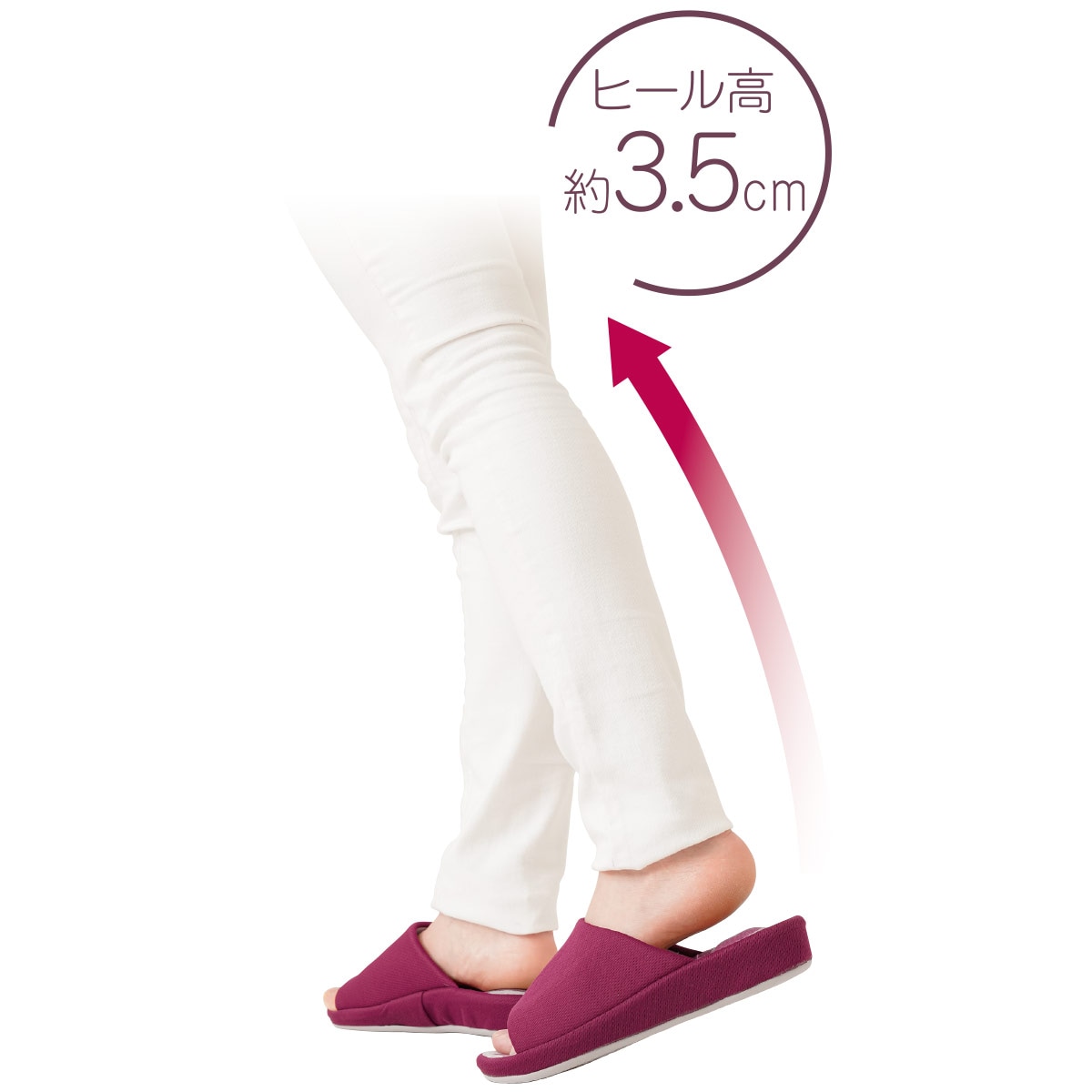 ヒール高 約3.5cm。軽量タイプなのでらくらく歩けます。