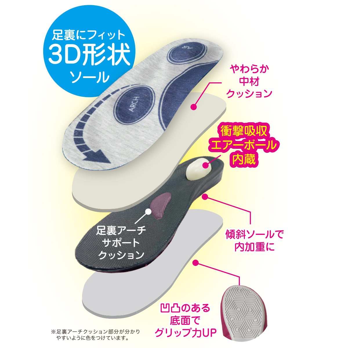 足裏にフィットする3D形状ソール