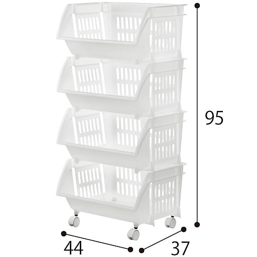 ホワイト B(4段) 水に強い樹脂製。サニタリーやランドリー周りの収納におすすめ。