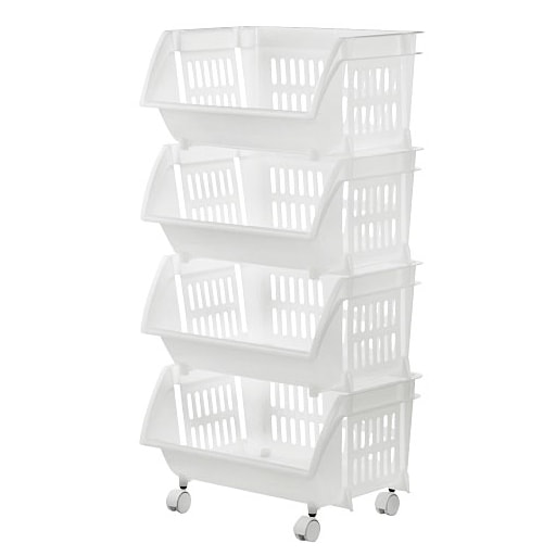 積み重ねても取り出しやすい!サッと出し入れできるバスケット型。クローゼットやワードローブに収まりきらない洋服の収納場所に。開口部の大きいデザインで、ランドリー・サニタリーでタオルや洗剤などの収納にもピッタリ。