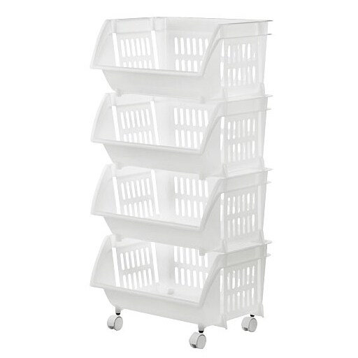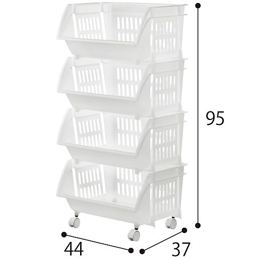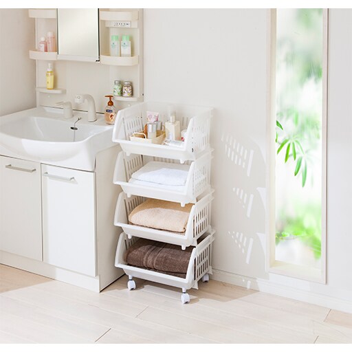 ホワイト B(4段) 水に強い樹脂製。サニタリーやランドリー周りの収納におすすめ。