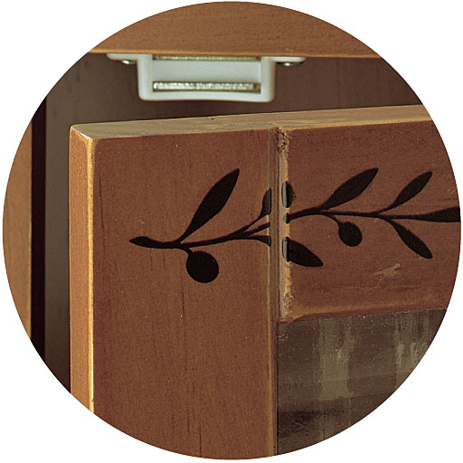 ブラウンナチュラルなオリーブ柄がアクセント。本体は、木目が美しくカントリースタイルにピッタリのパイン材。(※ブラウンのみ)