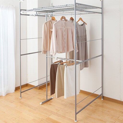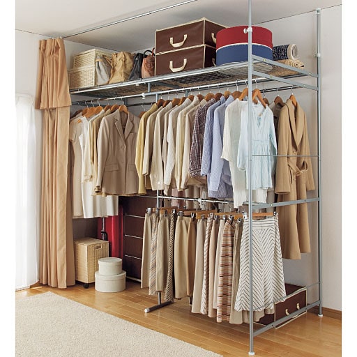 ブラウン A 上下2段使いで、倍の衣類が収納できる。