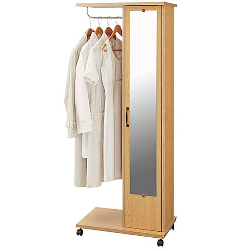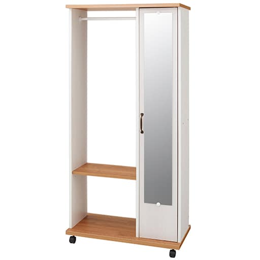 全身チェックができるミラー付きと細々としたものを収納するのに便利な引き出し付きハンガーラック。キャスターが付いているので移動もラクラクです。ミラー扉の中には棚板が3枚付いていてバッグなどの収納に便利。毎日の洋服の収納に、2段の引き出し付きラックとダブル使いでどうぞ。