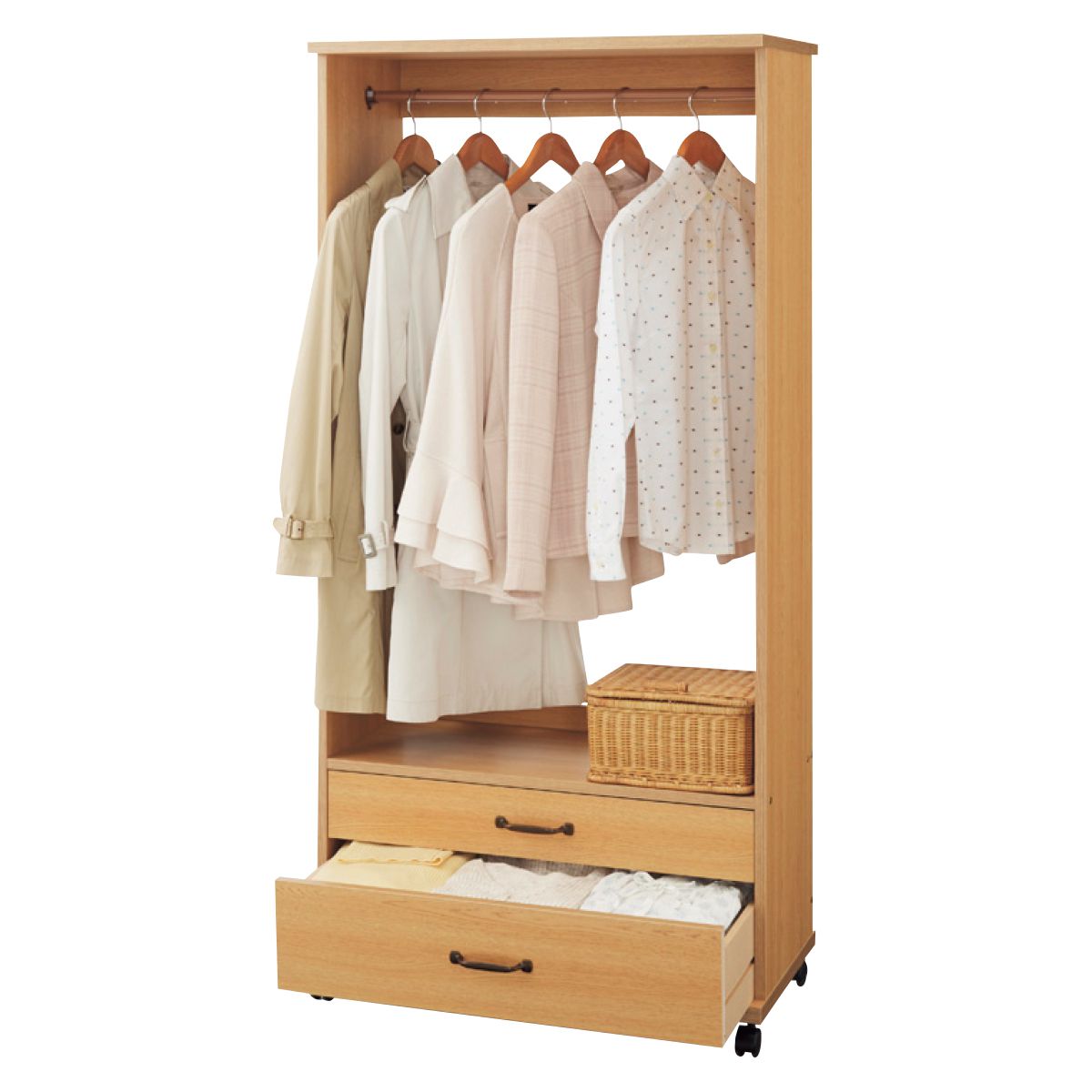 ふだん使いの洋服収納は、この1台におまかせ。おしゃれなカントリー風でお部屋をセンスアップ。クローゼットでは収まらないお気に入りの洋服の整理収納に。洋服収納に必要な機能がコンパクトにまとまった、一人暮らしのお部屋やマイルームにぴったりのハンガーラックです。