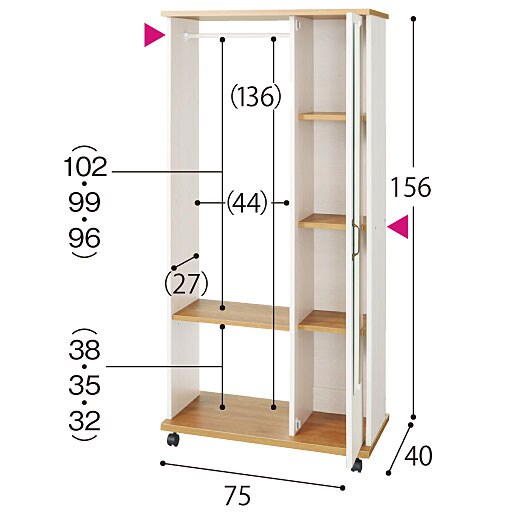 ホワイト A※寸法の単位はcm、( )内は内寸です。 ▲は固定棚