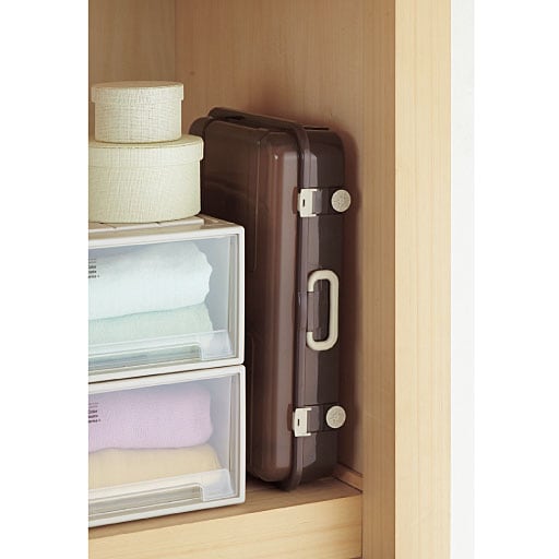 縦置き横置きに合わせてコロキャスターを付け替えできるスーツケース型収納ケースです。ワードローブやクローゼットのすき間、押入れ収納にもぴったり。ベッド下に洋服収納が出来る薄型のアイデア収納ボックス。チェストやタンスに収まりきらない洋服の収納場所におススメ。