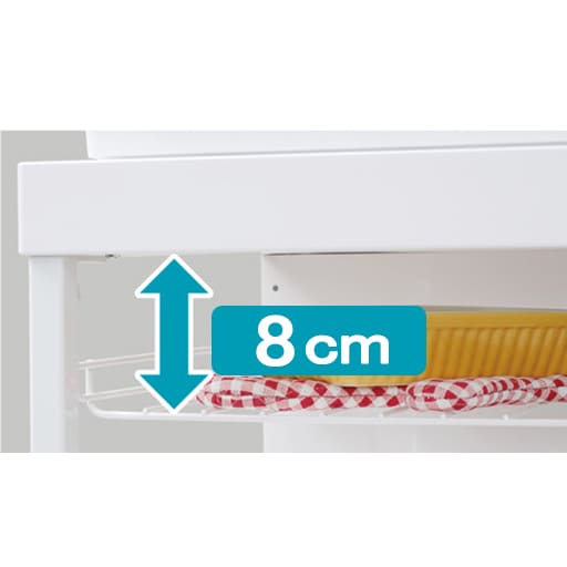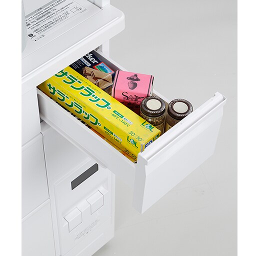 ホイルやラップなどのよく使う小物の収納場所に 炊飯器の高さにあわせて2段階に調整出来ます。(写真は、内寸8cm設定)