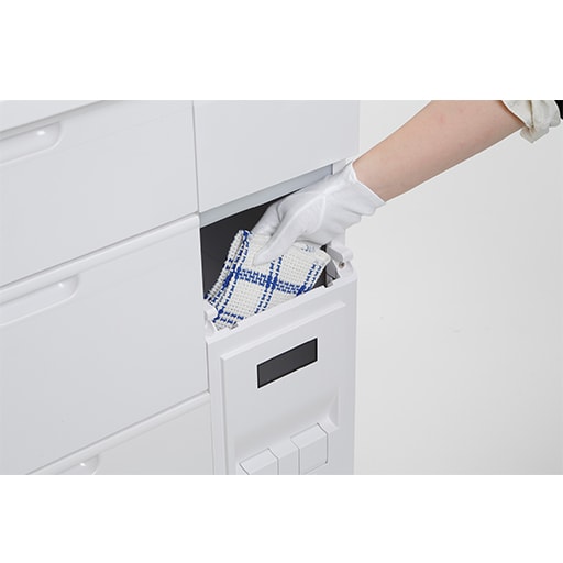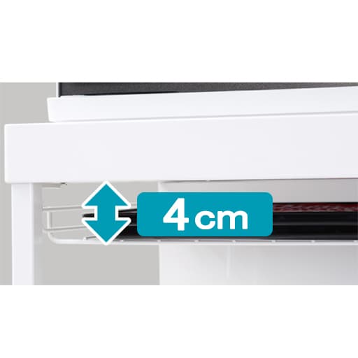 フキンやゴミ袋などのよく使う小物の収納場所に 炊飯器の高さにあわせて2段階に調整出来ます。(写真は、内寸4cm設定)