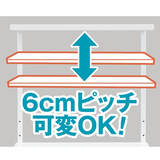 サイズB・D共通上棚は、6cm間隔で高さ調整出来ます。