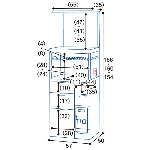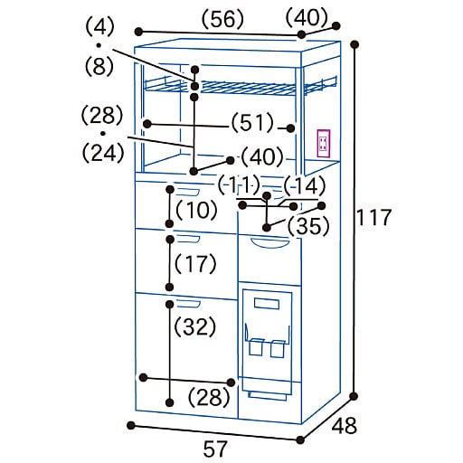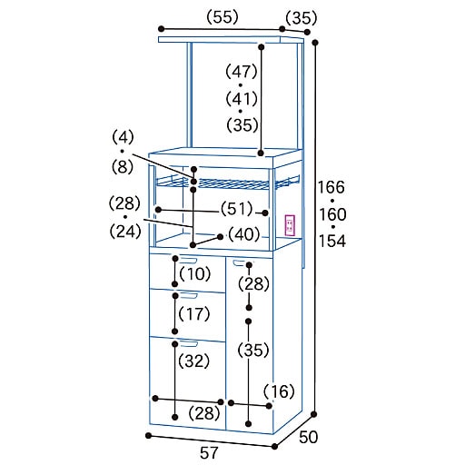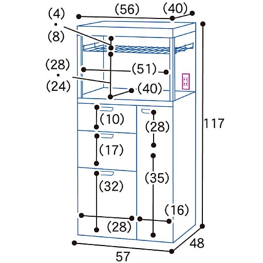 D(米びつ付き)ハイタイプ※寸法の単位はcm、( )内は内寸です。