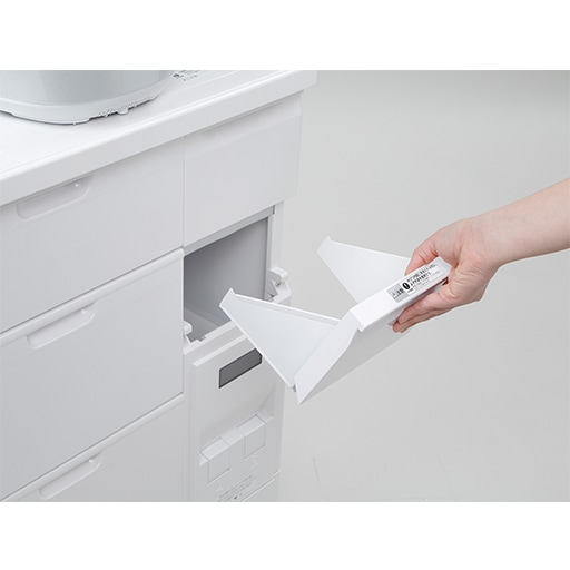 サイズC・D共通米びつの上には、フキンなどのちょっとした小物の収納に便利な小引出し付き。