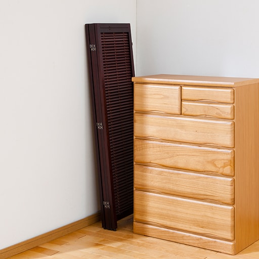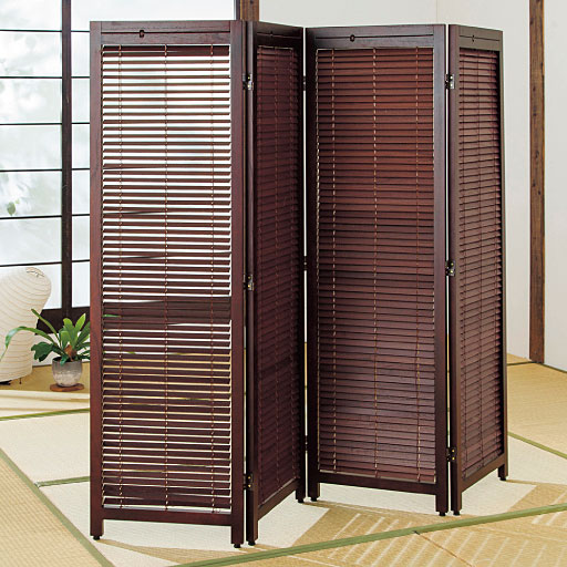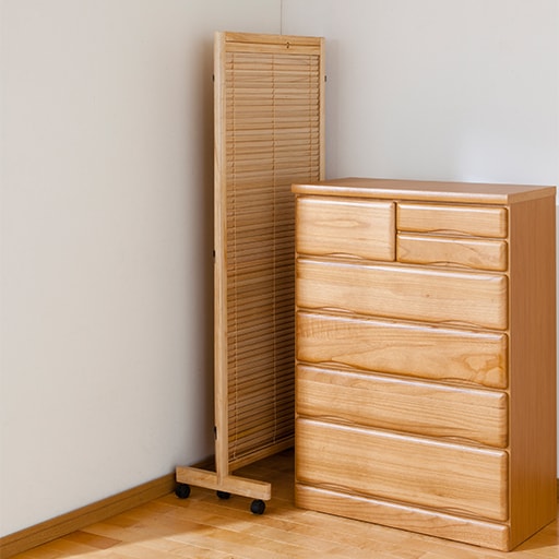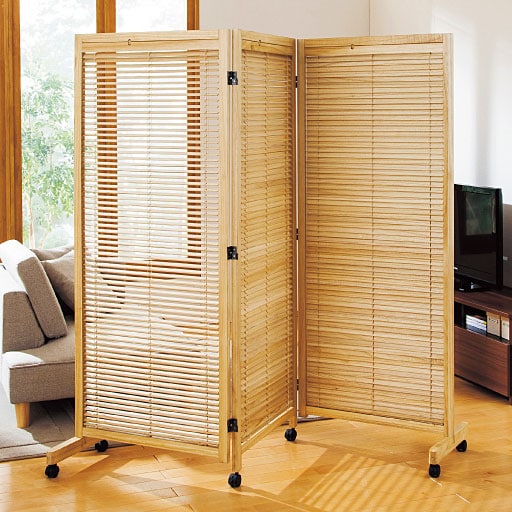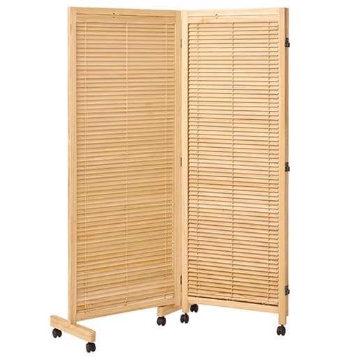 落ち着いた佇まいで和室にも洋室にもなじむブラインド付きのパーテーション。枠の上部についているダイヤルでブラインドの角度を調節でき、差し込む光の具合や風通しを加減できます。フローリングで使えるキャスター付きと、和室におすすめのアジャスタータイプをご用意しました。※アジャスターのみお客様取り付け。