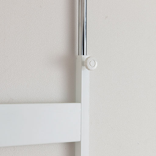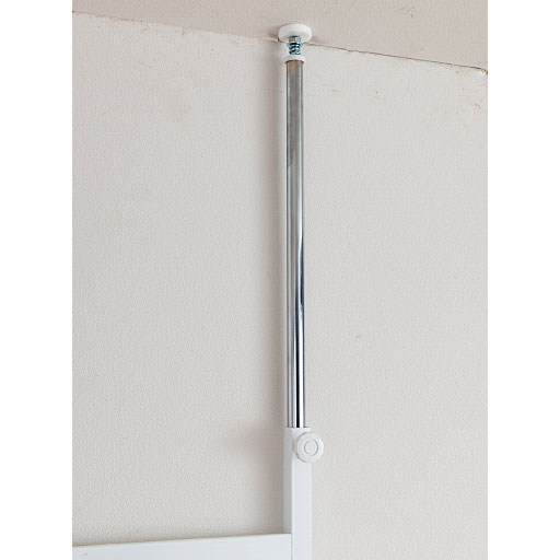 天井高さ202cm~265cmの範囲で設置可能。天井部はスプリング形状でしっかり固定します。 ラダーラック部のボルトを緩めることで、伸縮パーツの高さを調整できます。