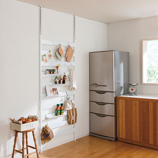 清潔感のあるホワイトは、キッチンで相性バッチリ。ミトン(鍋つかみ)置きや、スパイスラックとしの使い方もできます。エコバッグを掛けて置けば、買い物へ行く際もスムーズです。