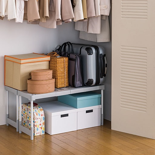 押入れ・クローゼットの収納に便利な整理棚(幅が伸縮で隙間にフィット)/2個セット