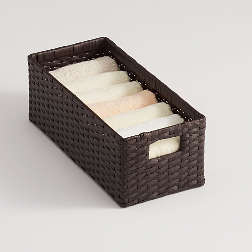 わずかなスペースに置ける! スリムタイプのおしゃれなラタン風サニタリーチェストです。散らかりがちな小物を上手に隠して収納できます。