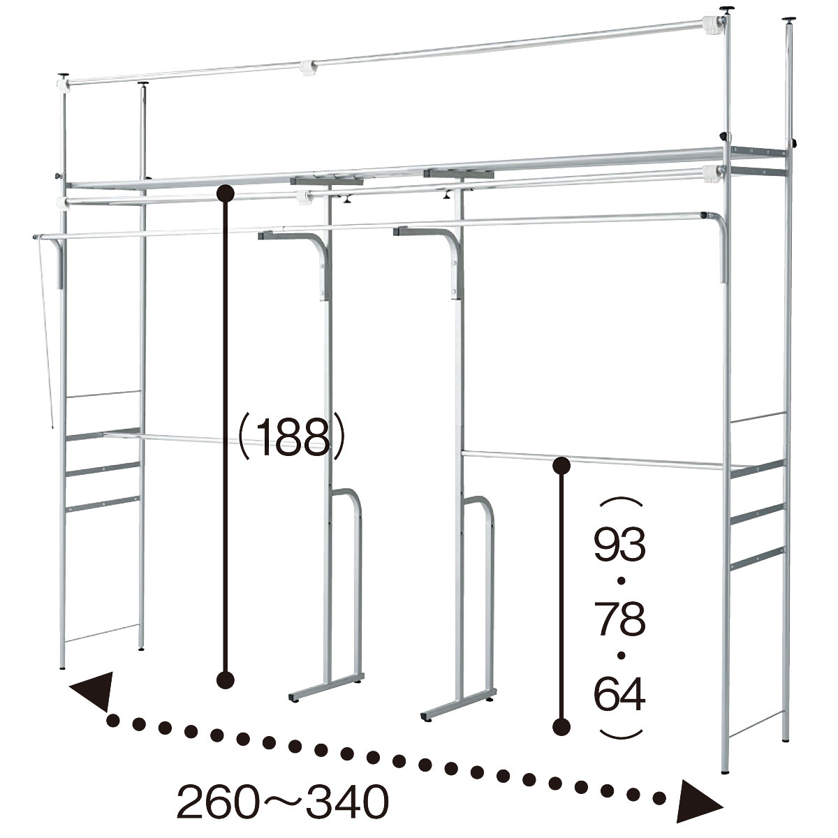 C (本体/幅260~340cm)天井いっぱいまで収納スペースにできる、つっぱり式ハンガーラックです。
