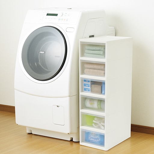【完成品】洗面台やシンク横で大活躍のすき間ストッカー。幅27cmのミドルサイズで、ちょっとしたすき間を有効活用できます。タオルや衣類から洗剤のボトルまで、たっぷりの収納力も自慢です。