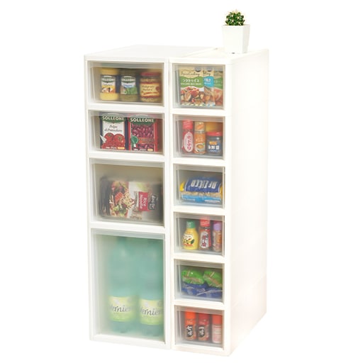 D(左側) キッチン用品を分別して効率的に収納。※右のモデルは販売しておりません。