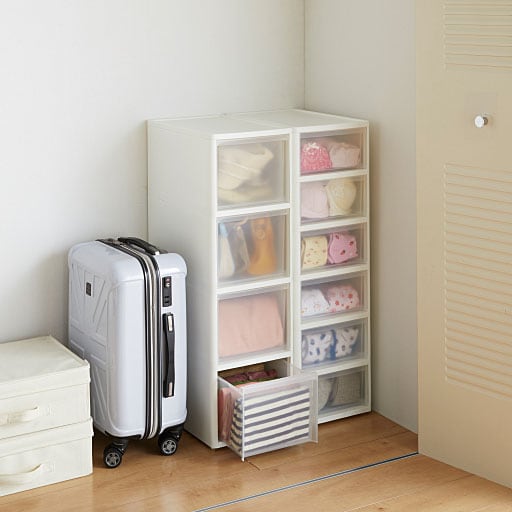 浅引き出し収納例スパイスなどの小瓶や、サニタリー小物の収納に。