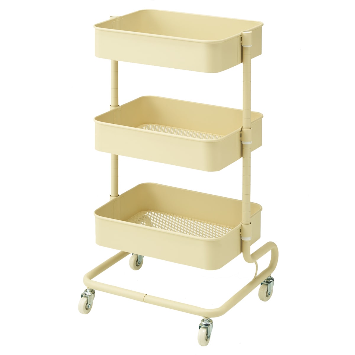 狭い場所でも使い勝手がよく、様々なシーンで使えるバスケットワゴンです。バスケットの底は通気性の良いメッシュ仕様で、野菜やタオルの収納にも便利。工具不要で簡単に高さ調節できるのもうれしいポイントです。キッチンワゴンやサニタリー収納としても、子供部屋のおもちゃ入れやガーデニング用としてもおすすめ。シンプルなデザインでインテリアにもなじみやすく、キャスター付きで移動もラクラクです。