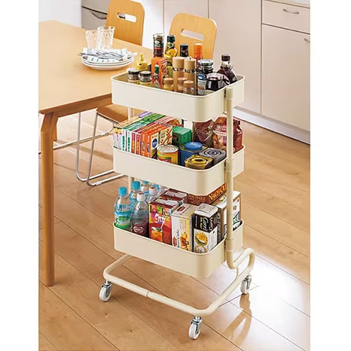 アイボリー B (レギュラー)散らかりがちな小物を3段のバスケットにまとめて収納。