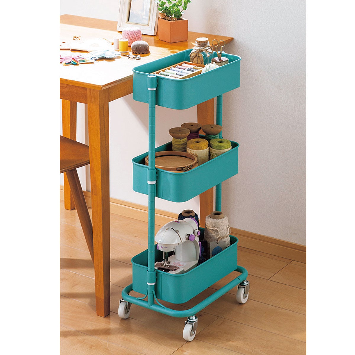 ターコイズブルー A (スリム)スッと引き寄せてサッと取り出せる、キャスター付きバスケットワゴンです。