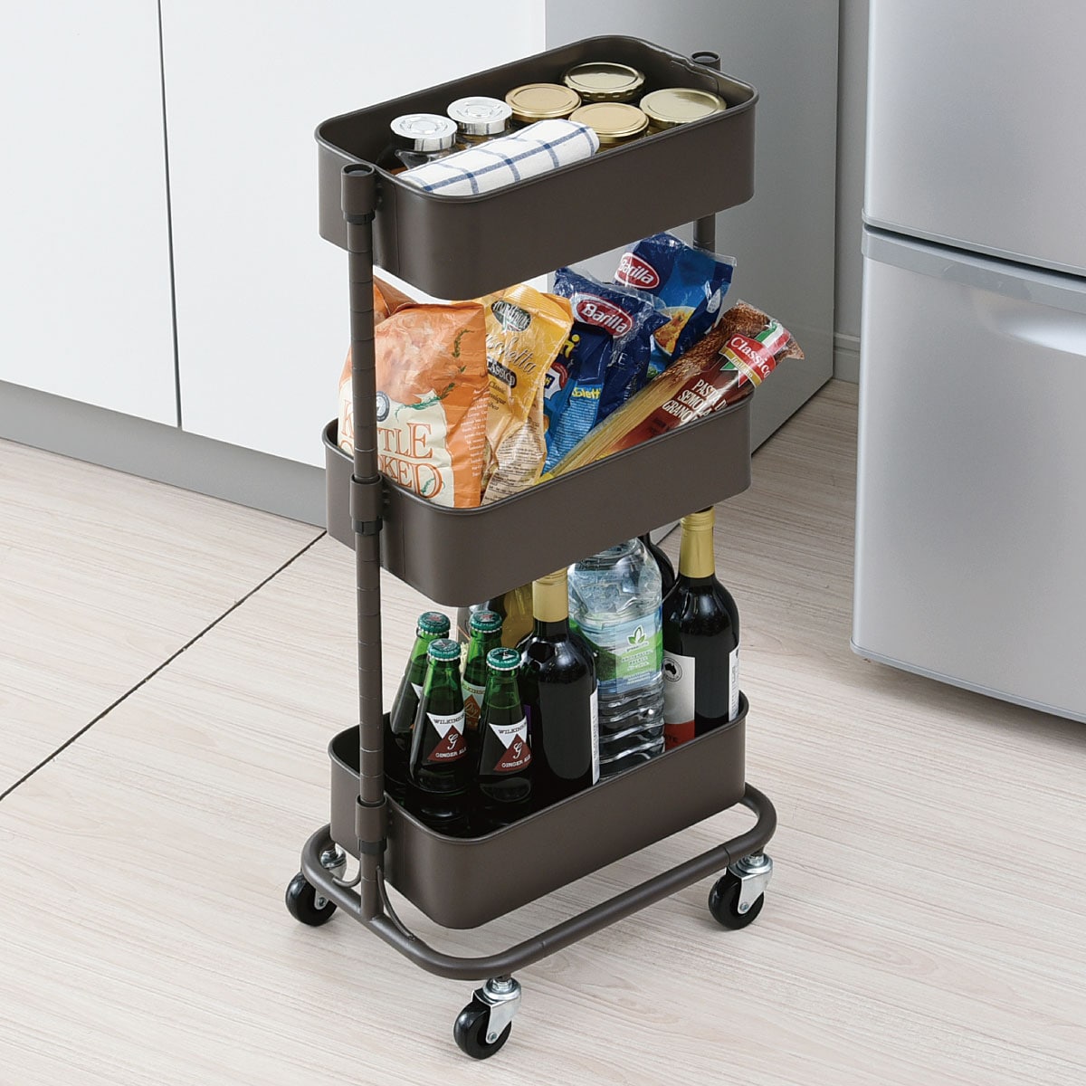 スッと引き寄せてサッと取り出せる、キャスター付きバスケットワゴンです。散らかりがちな小物を3段のバスケットにまとめて収納。デスクやドレッサーの脇に、キッチンや洗面所にもおすすめ。スタイリッシュなデザインがお部屋のアクセントになります。