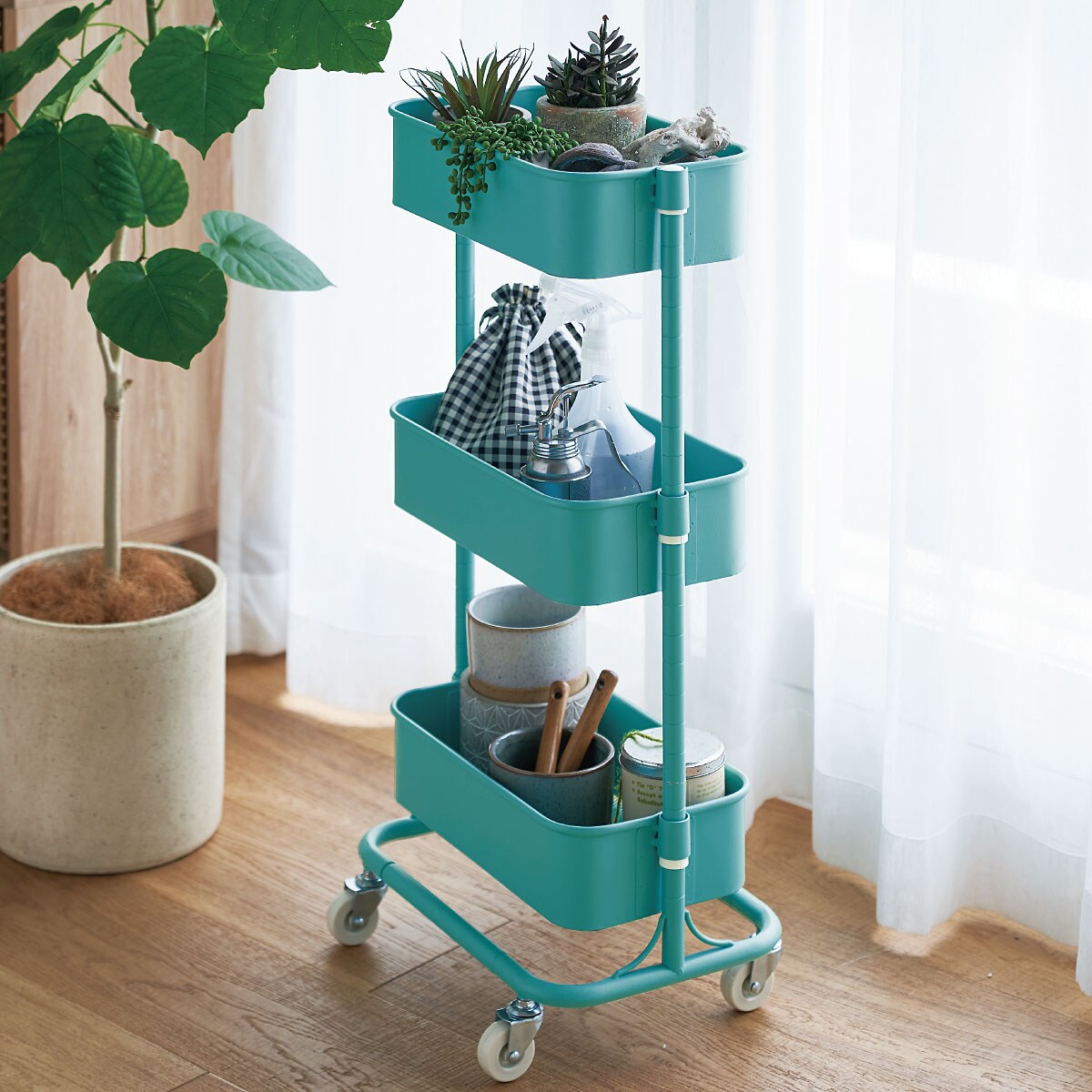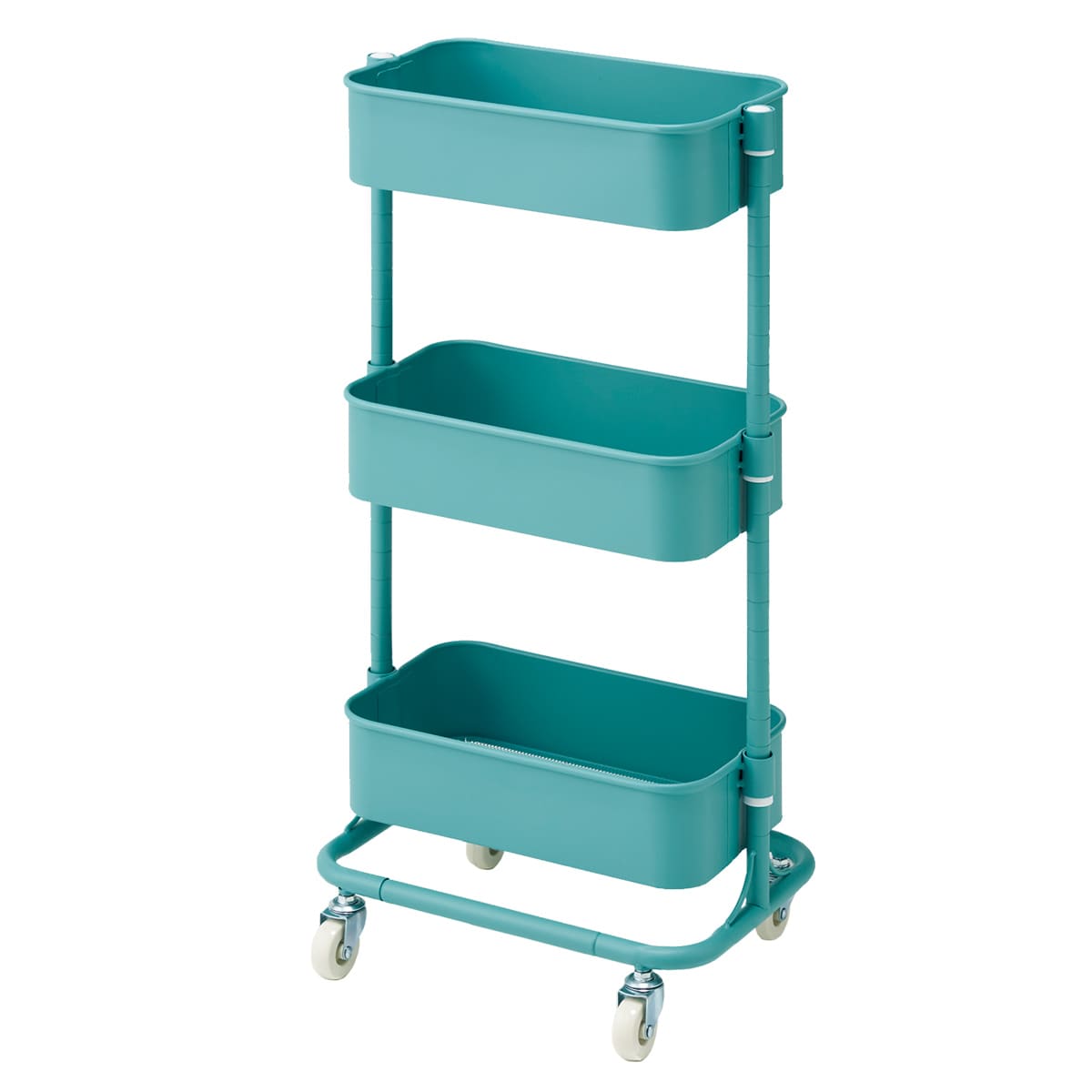 ターコイズブルー A (スリム)スッと引き寄せてサッと取り出せる、キャスター付きバスケットワゴンです。