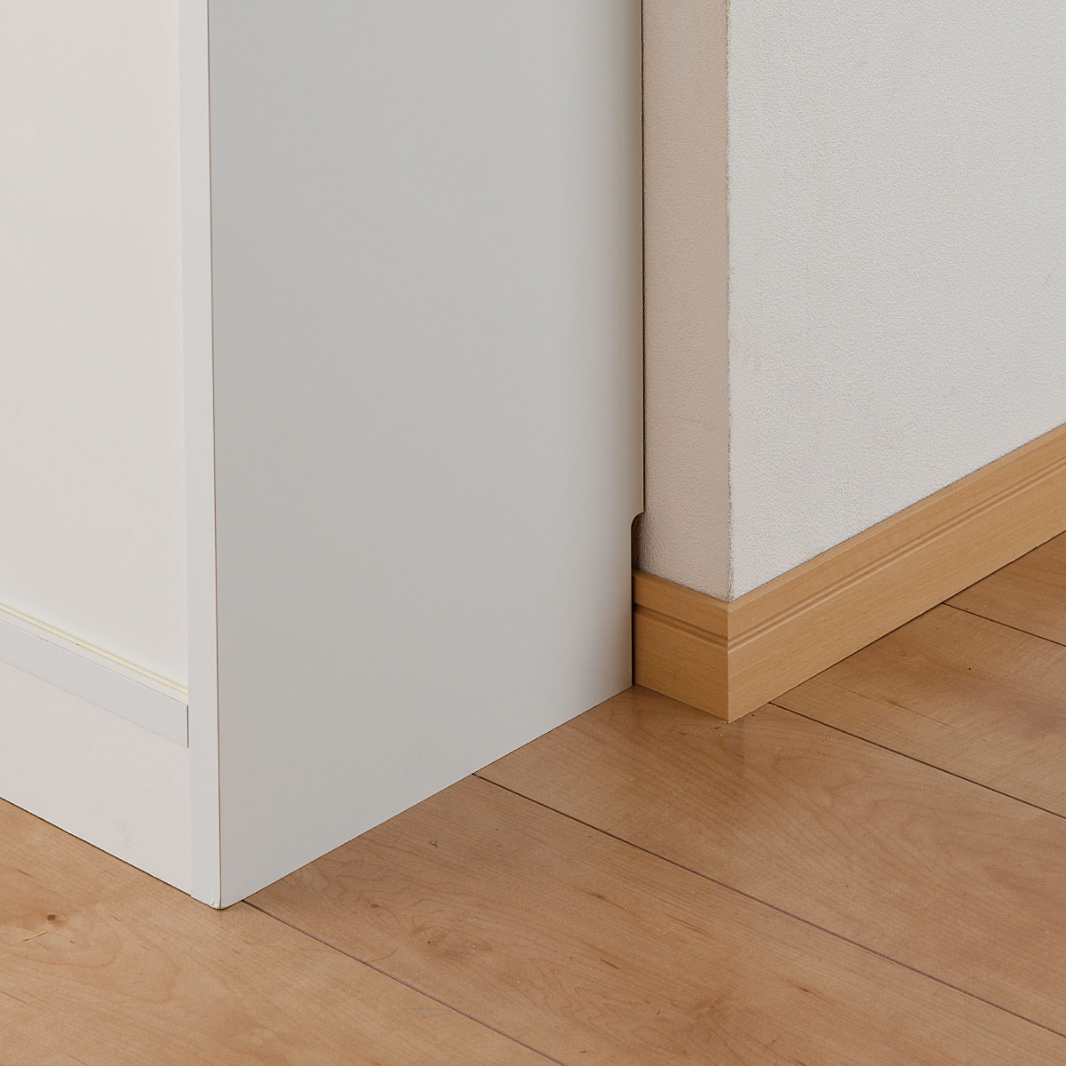 背面に幅木カット(1×9cm)があるので、壁面にぴったり設置できます。