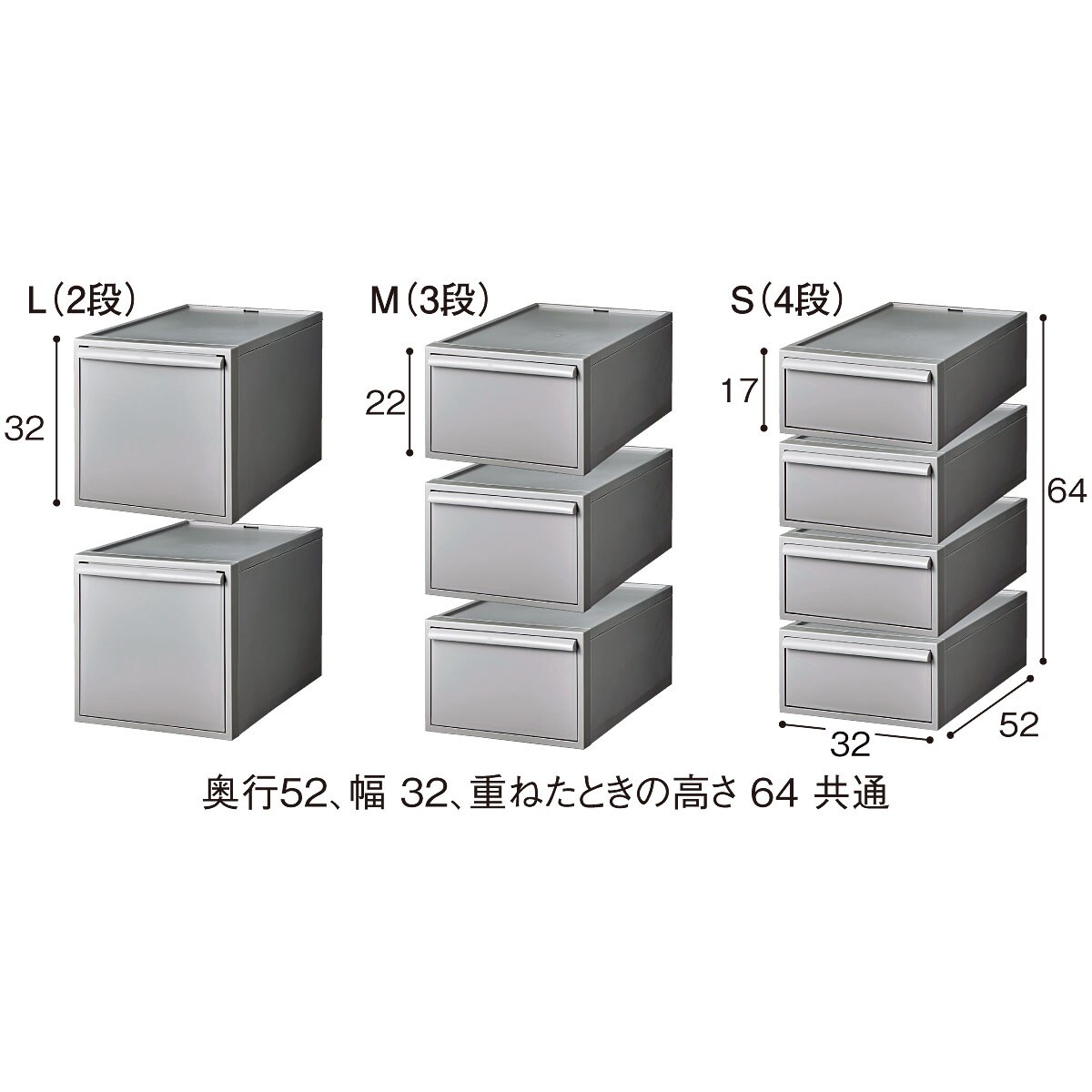 • グレー<br>(左から) S (4段)・M (3段)・L (2段)