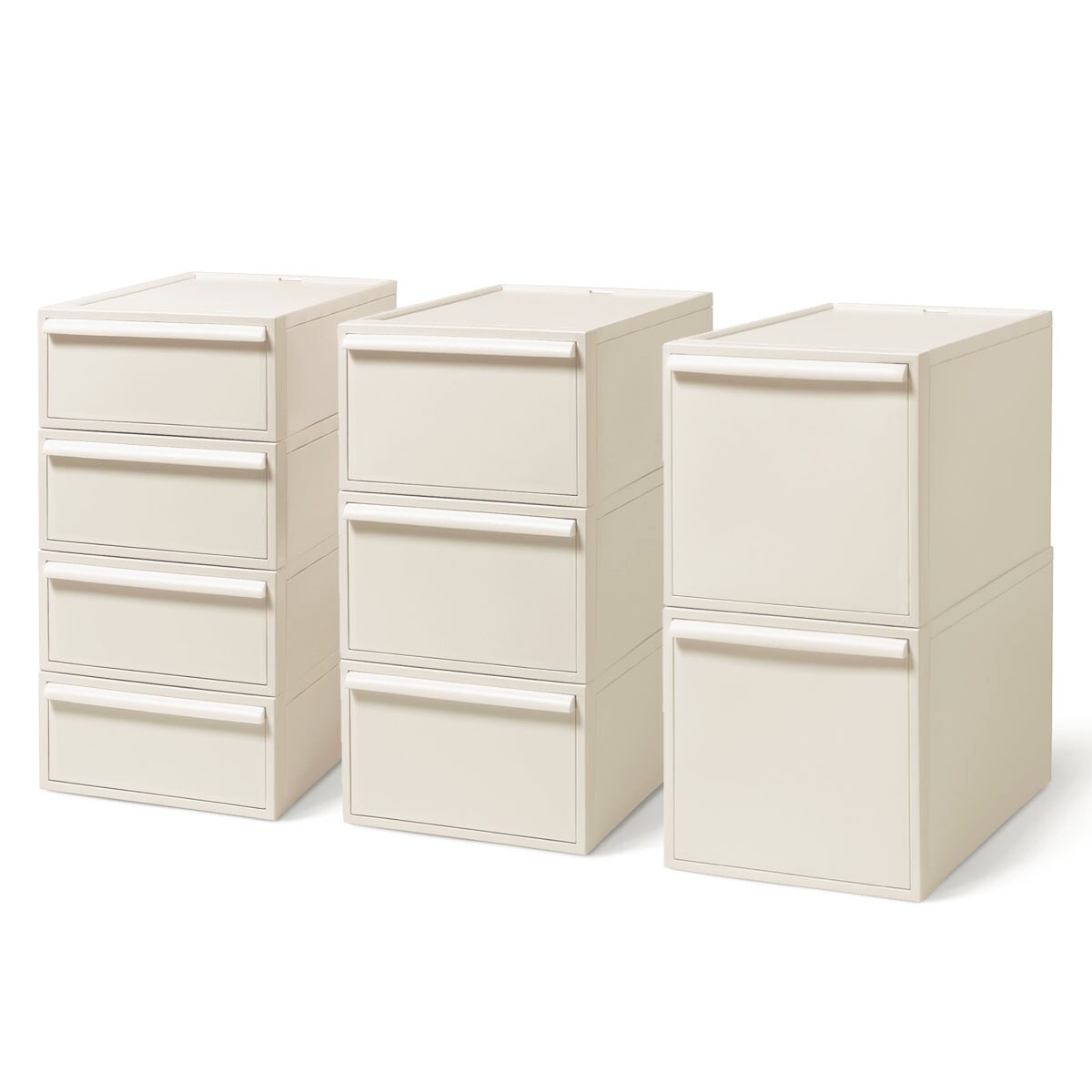 • ベージュ S (4段)・M (3段)・L (2段)<br>統一感のあるサイズ展開で、レイアウトは自由自在。