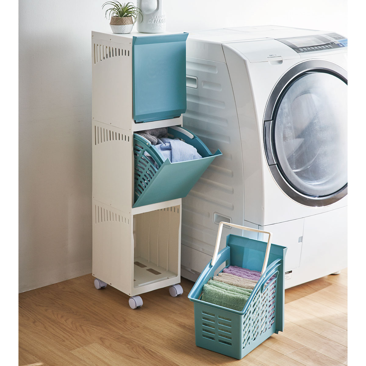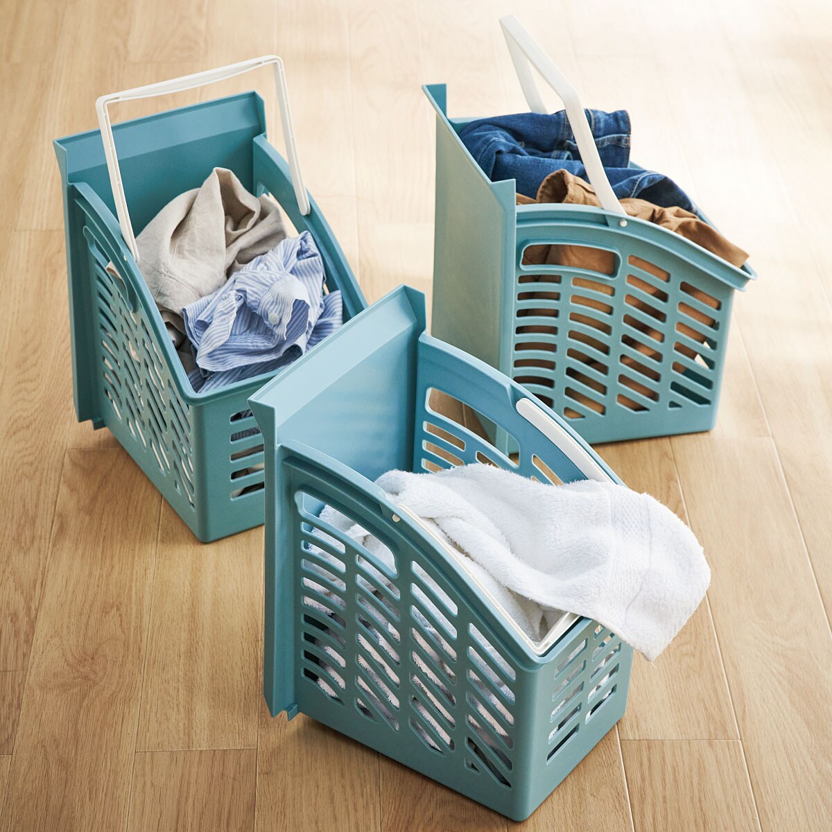 ブルー持ち運びできるので、洗濯物の仕分けから干し場への移動に便利です。