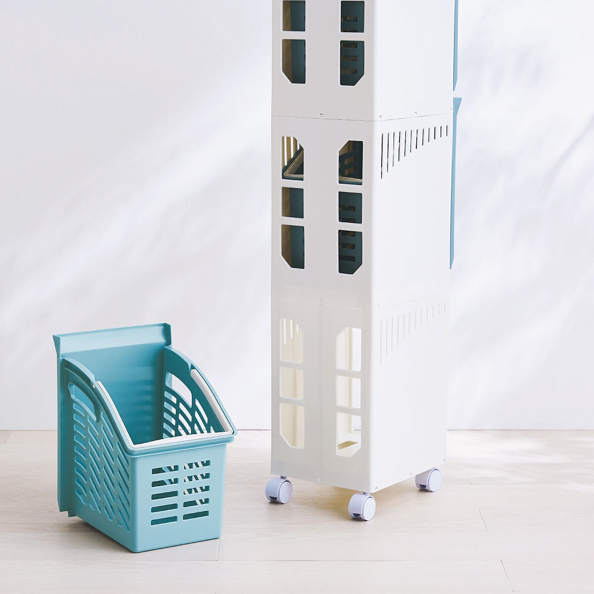 ブルー B (3段)洗面所のすき間を有効活用できるスリムタイプ。
