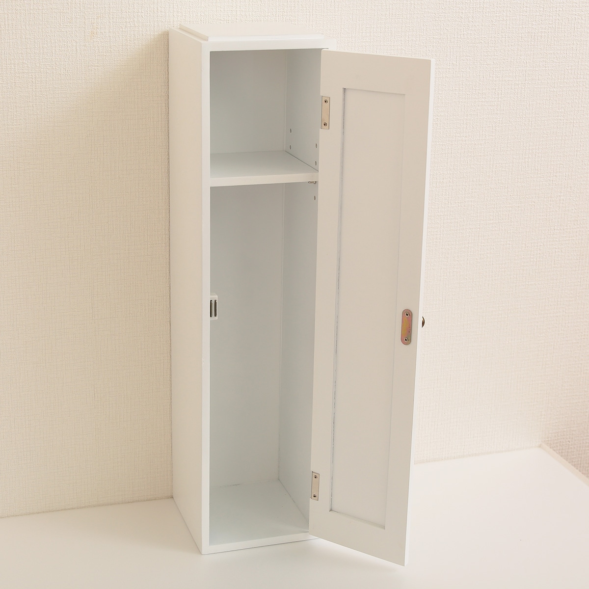 C (扉タイプ)扉を開けた状態。棚板は可動式で高さ調節が可能です。