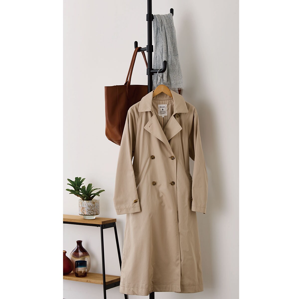 フックの高さは自由に調節可能。ロングコート・バッグなども掛けられます。