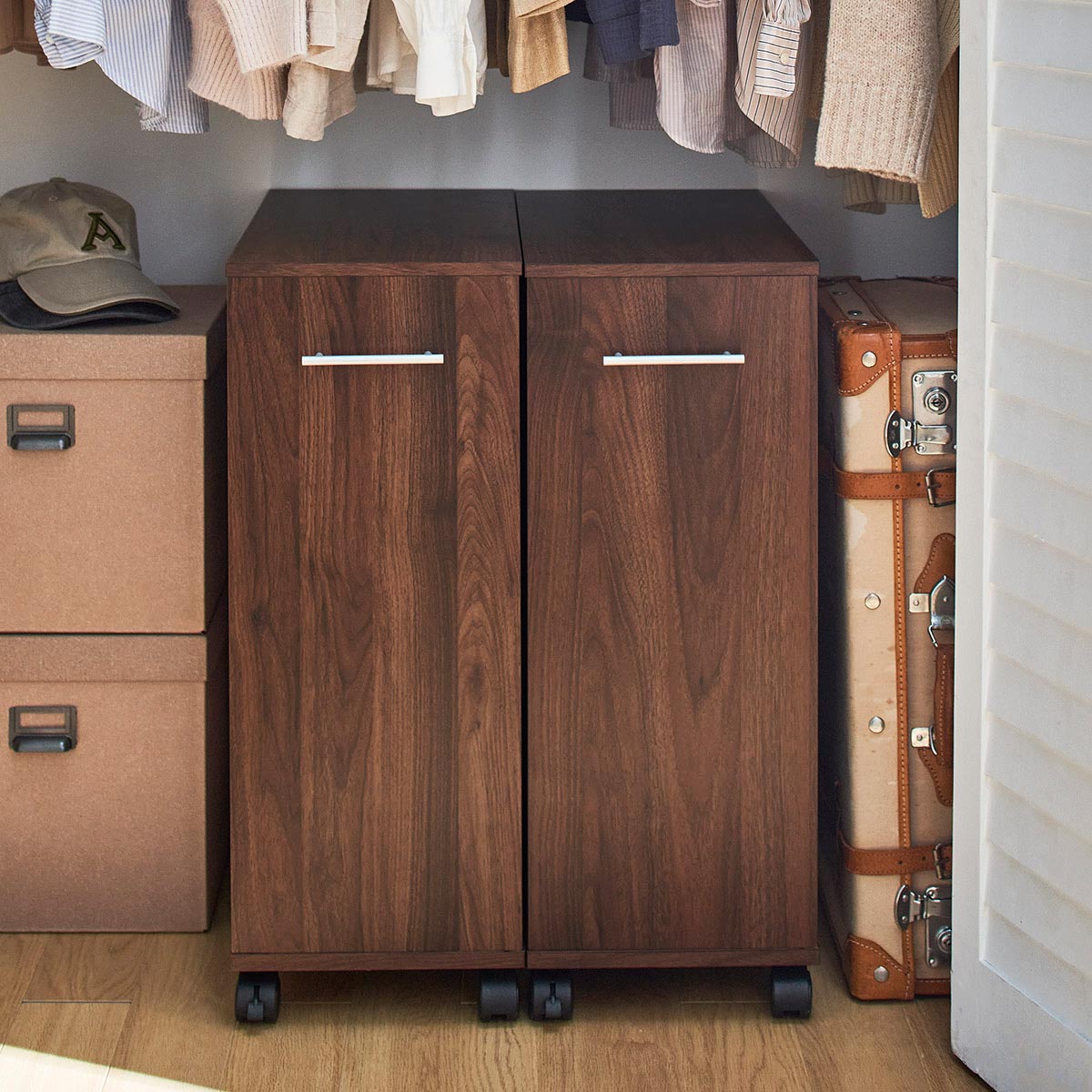 • ダークブラウン<br>クローゼット下のすき間に置けて、すっきり収納。