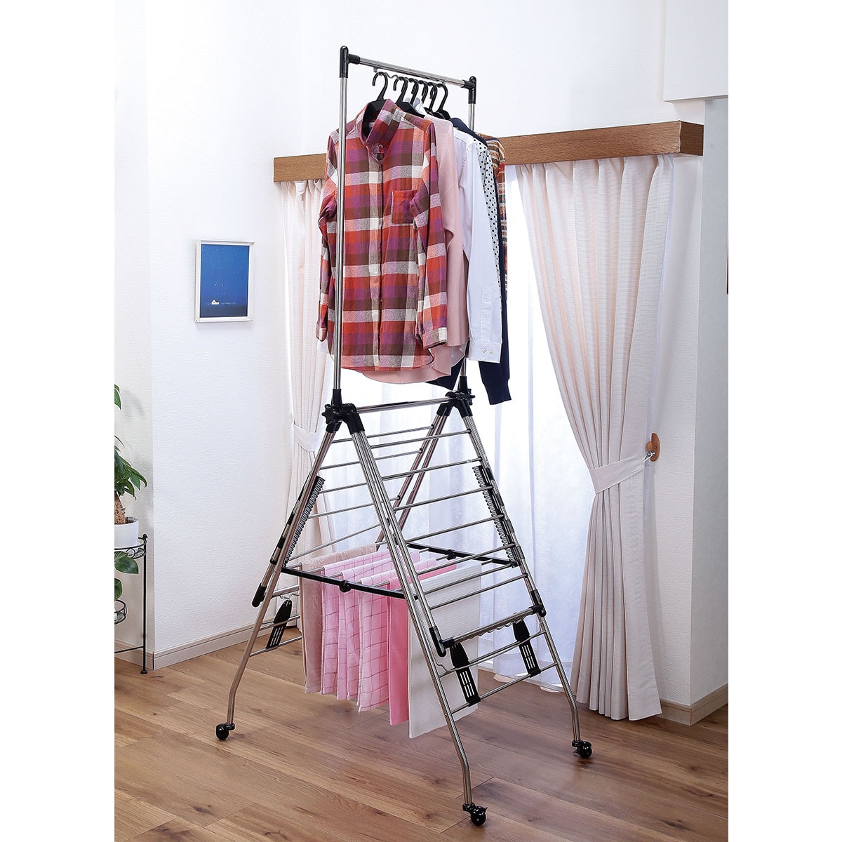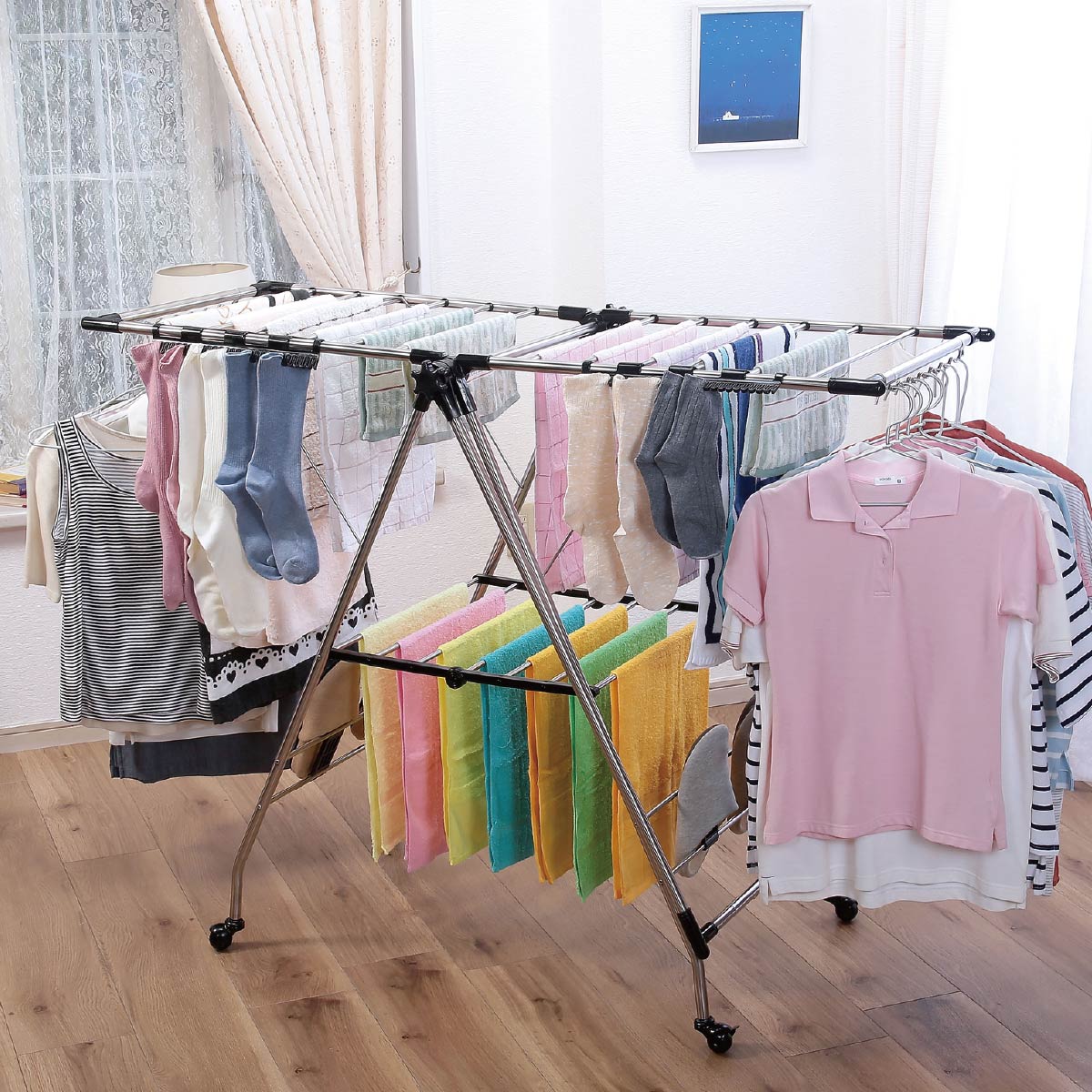 干すものを効率的に乾かせるので、イヤな部屋干しがこれ1つでラクに!