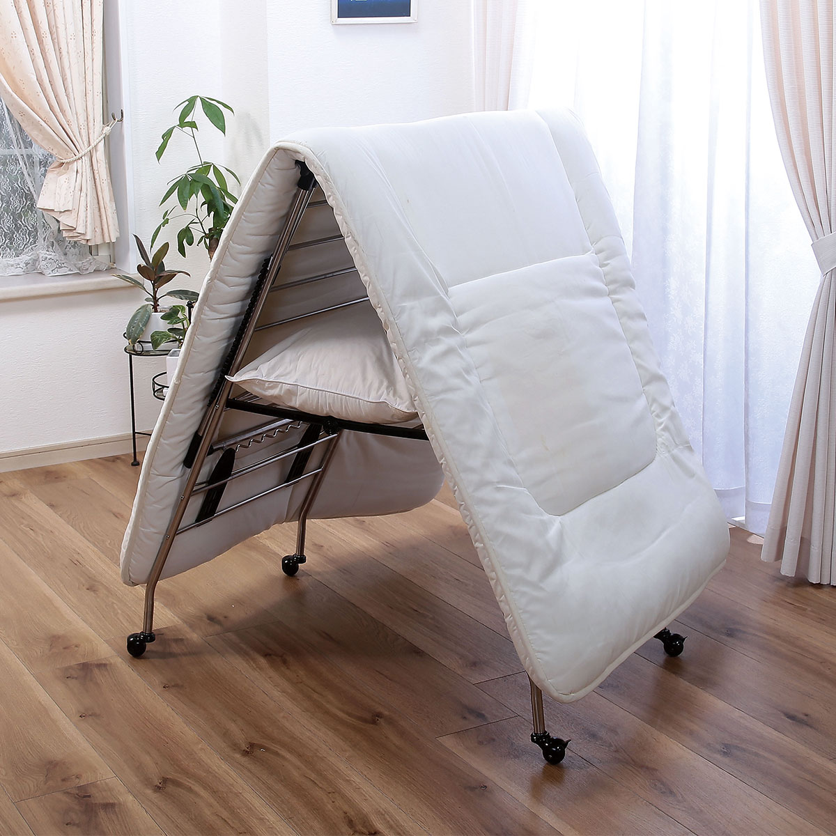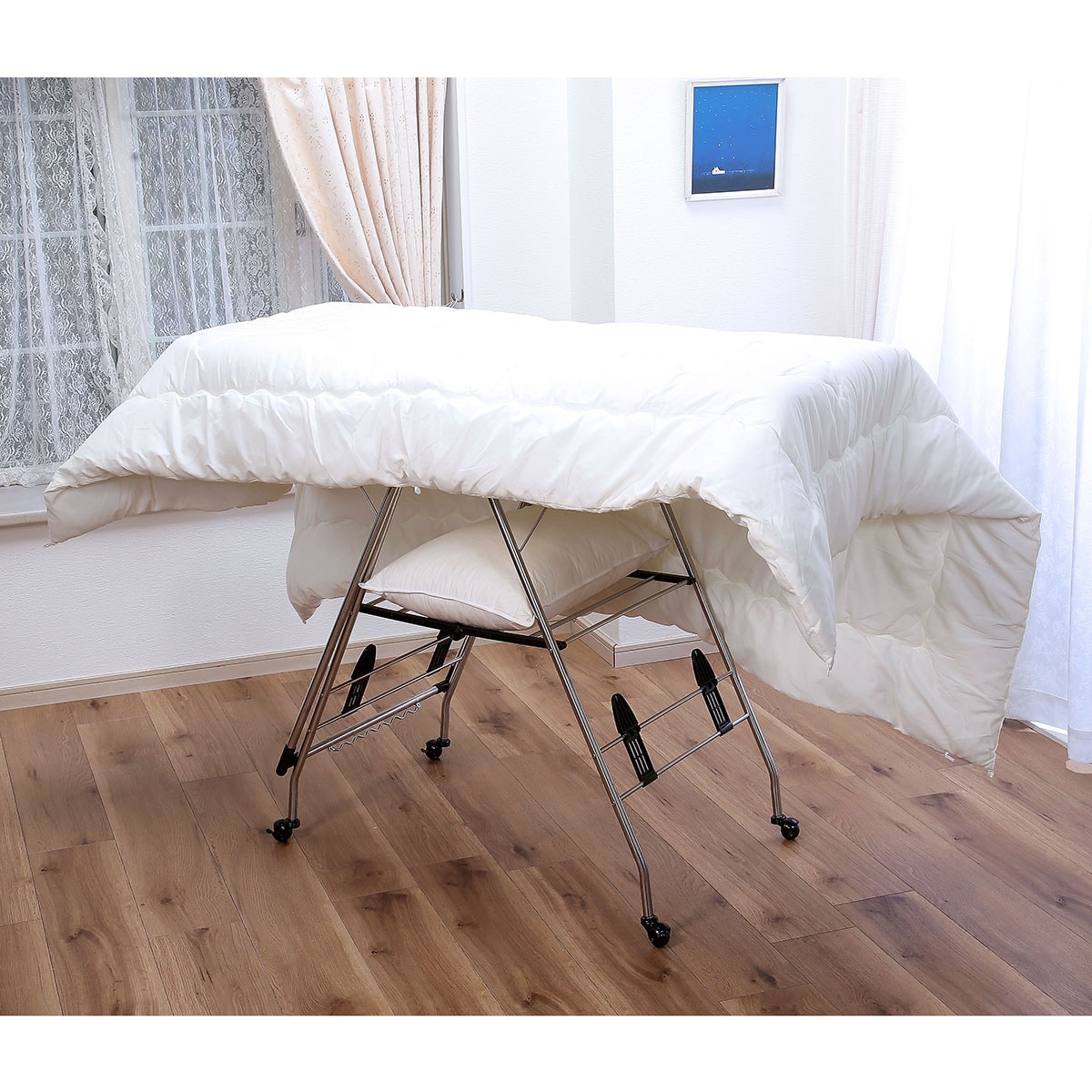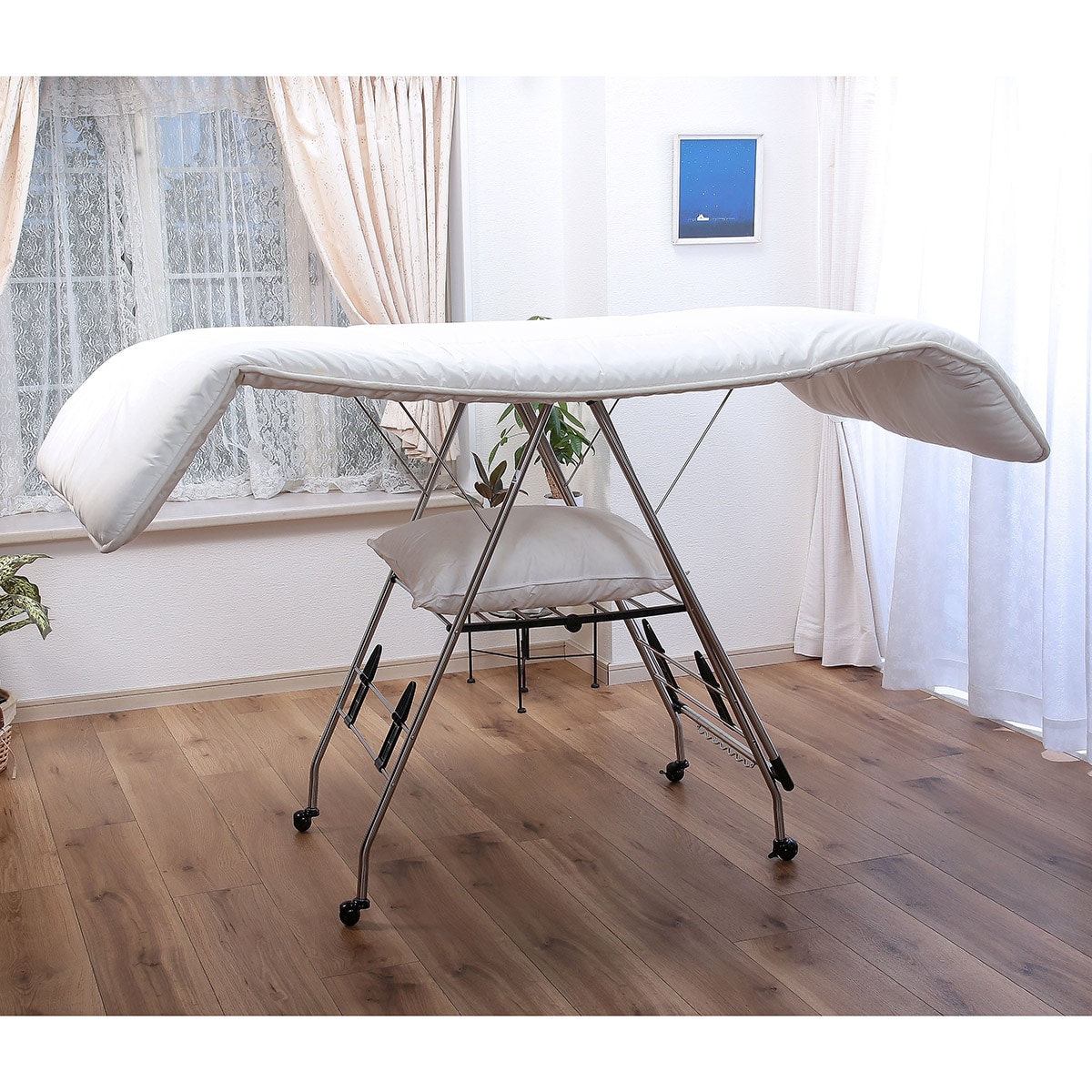 山型に変形させれば布団も干すことができます。