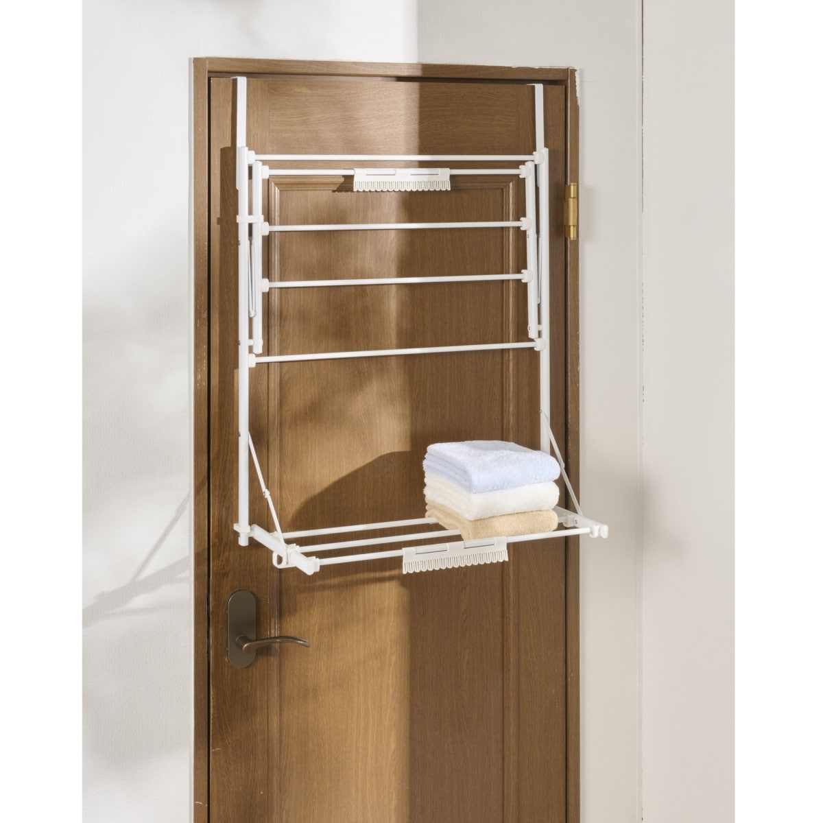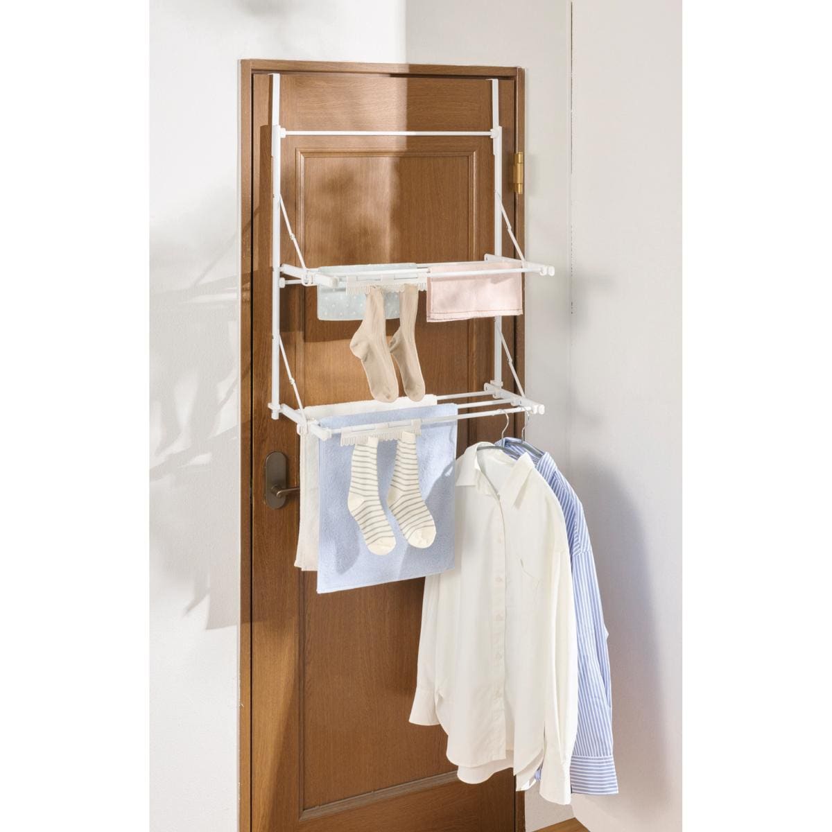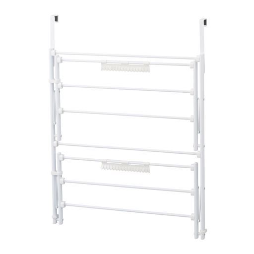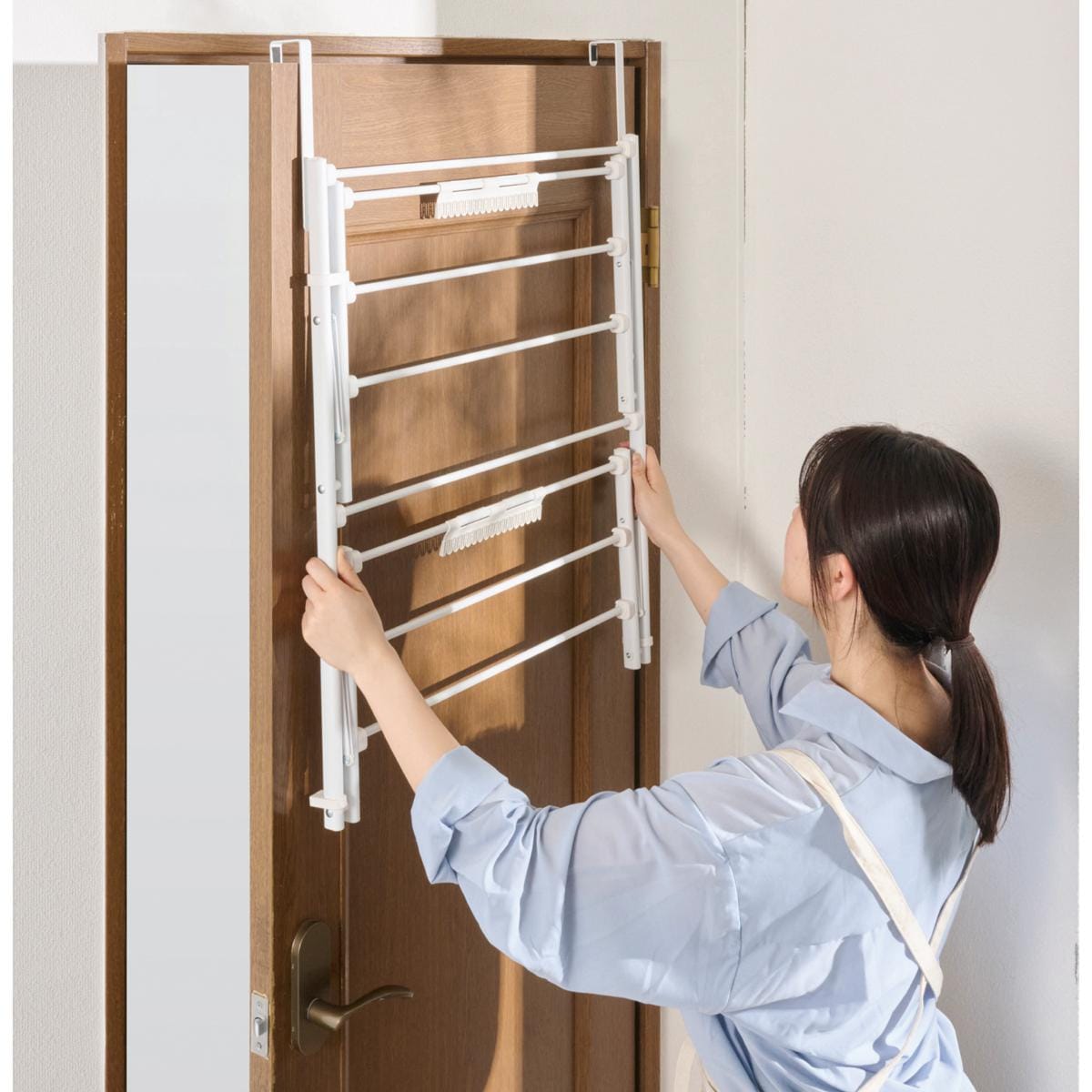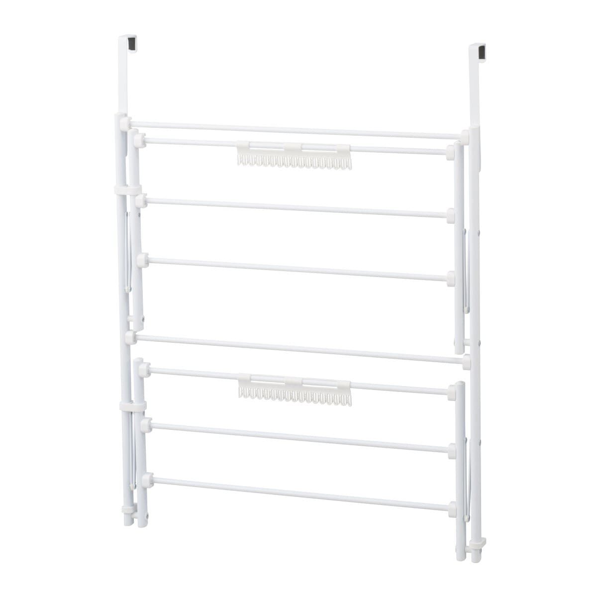 ホワイト省スペースでたっぷり干せる便利なドア掛け物干しです。