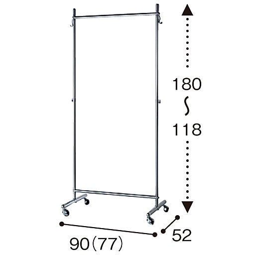 たっぷり掛けてもグラつきにくい大容量のキャスター付き頑丈ハンガー