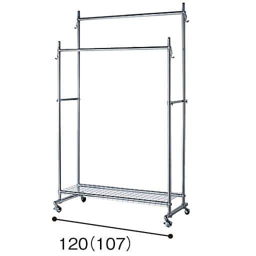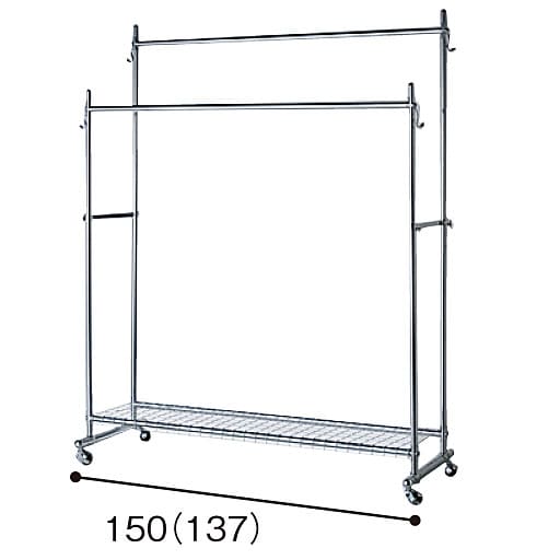 G (ダブルタイプ/幅150cm)たっぷり掛けてもグラつきにくい! 大容量のキャスター付きハンガーラックです。