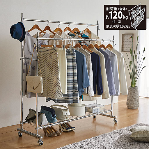 G (ダブルタイプ/幅150cm)重たくて丈の長いコートやジャケットなどもしっかり吊るせます。